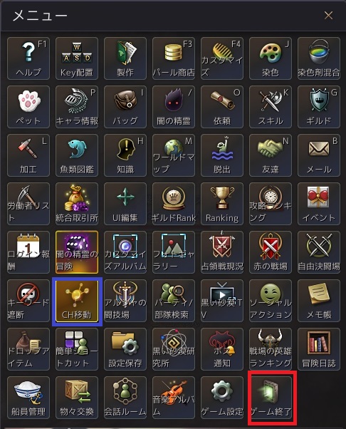こちらの赤く囲んだゲーム終了が便利ですので こちらのゲーム終了をクリックすると